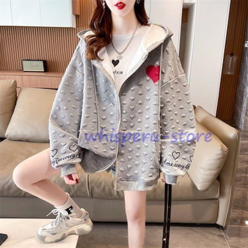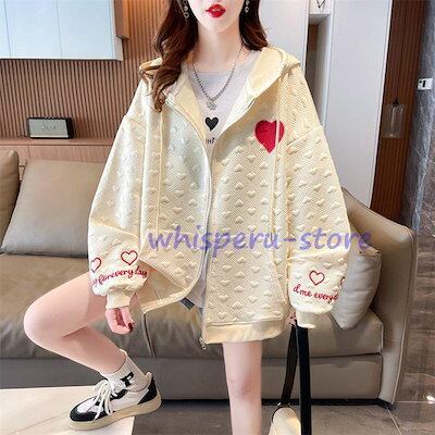 パーカー 可愛い レディース ジップアップ ワッフル 長袖 トップス ゆったり ファッション お洒落