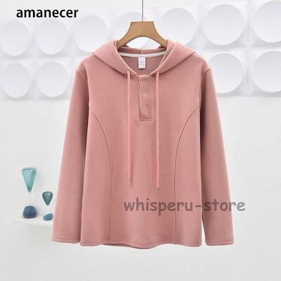 パーカー スキッパー フード付き プルオーバーパーカー 起毛 カジュアル 弾力性 切り替え レディース トップス