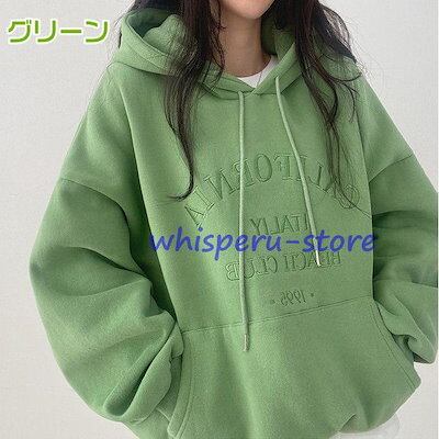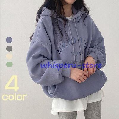 パーカー レディース 長袖 トップス プルオーバー ルームウェア スウェット 刺繍 文字 春 秋 冬 カジュアル ポケット付き