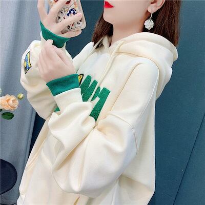 秋冬 パーカー レディース oversizeゆったり百掛け フード付きパーカー シンプル スウェット 韓国ファッション 長袖