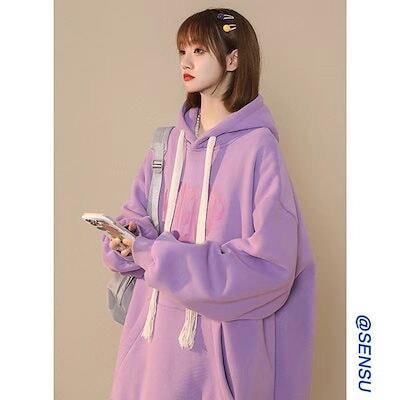 人气新作秋韓国ゆったりデザイン感着痩せ 大きいサイズ 体型カバー薄手 フード付きパーカー