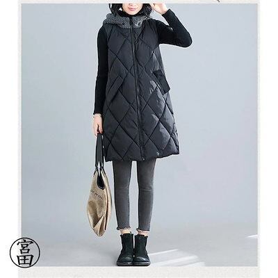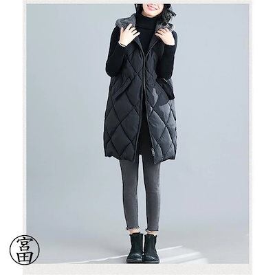 ベスト 秋冬 レディース アウター ロングベスト 中綿ベスト 前開き ジレ コート ジャケット キルティング キルティングコート ノースリーブ 羽織 フード 中綿