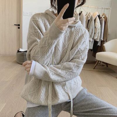 フード付きトレーナー レディース 秋冬新作 ゆったり 無地 セーター 大きいサイズ 厚手 カジュアル アウター トップス レディース