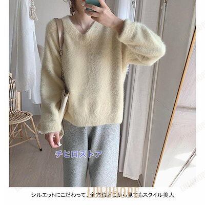 セーター 長袖 レディース Vネック ソフト 厚手 起毛素材 無地 トップス アウター プルオーバー 暖かい 柔らかい シンプル 無地 ゆったり 着回し 快適