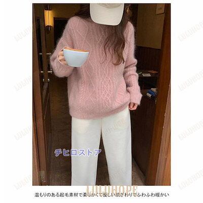 ニットセーター 長袖 セーター レディース ニット セーター クルーネック ソフト 厚手 スリット 無地 トップス アウター プルオーバー ゆったり 着回し