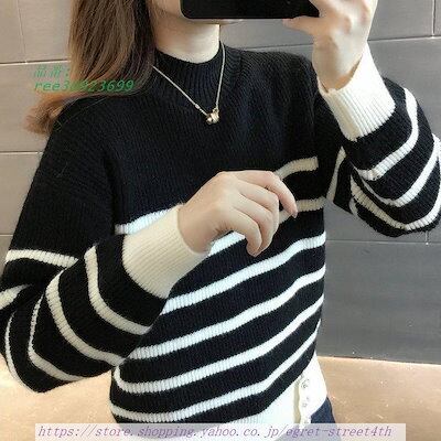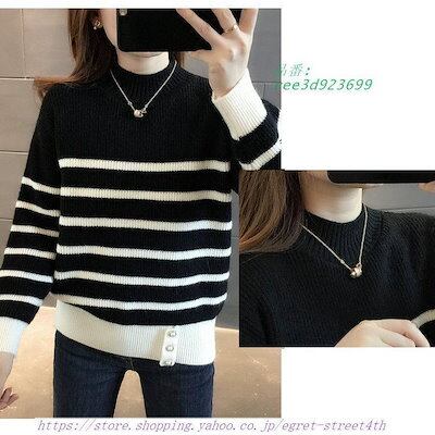 レディース 女性用 ウィメンズ トップス ニット タートルネック アウター トレーナー シンプル 長袖 セーター ボーダー オシャレ 通勤 上着