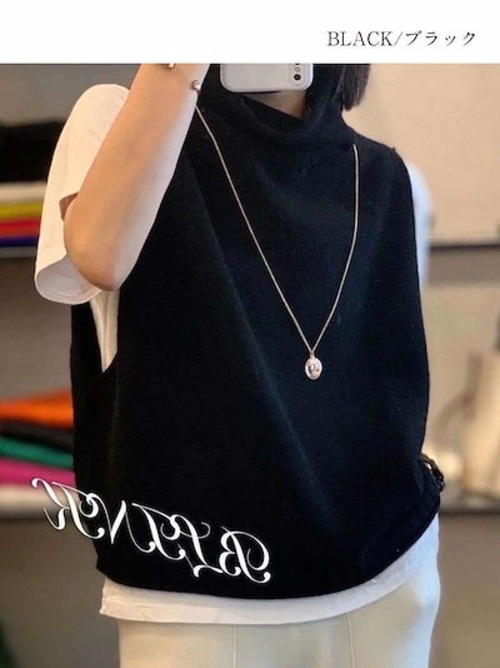 ニットベストレディース秋冬ハイネックニットベストタートルネックトップスノースリーブ大きいサイズリブニットトップスウール混セーター重ね着ニットセーターお洒落アウターカジュアルレイヤードプルオーバーニット