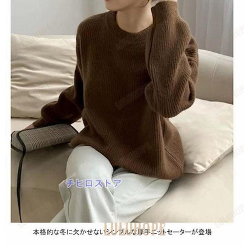 ニットセーター 長袖 セーター レディース ニット ソフト ニット 厚手 トップス アウター クルーネック プルオーバー リブ おしゃれ シンプル 無地