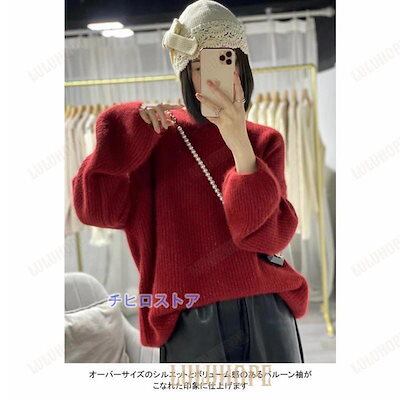 ニットセーター 長袖 セーター レディース ニット ソフト 厚手 トップス アウター クルーネック プルオーバー 柔らかい 暖かい バルーン袖 カジュアル