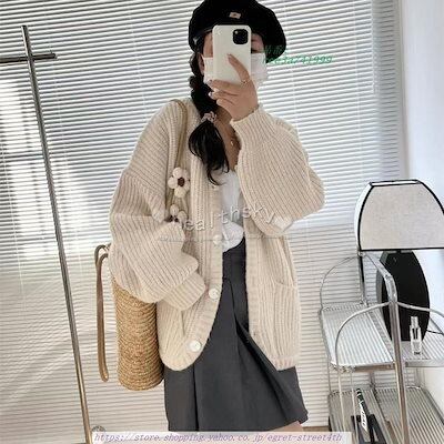 新型韓版厚手セーターニットカーディガン レディース秋冬春アウター 女性4色フリーサイズ レディース 長袖カジュアル 制服 ゆったりコート婦人服