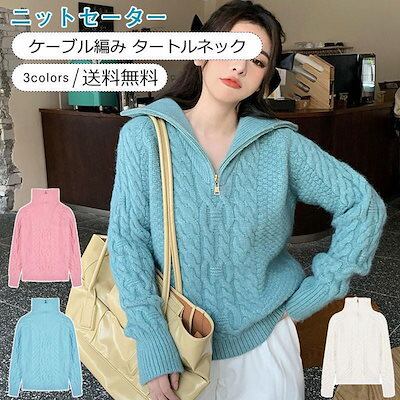 ニットセーター レディース ニットアウター 無地 タートルネック 長袖 ケーブル編み トップス カジュアル あったか きれいめ おしゃれ