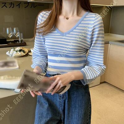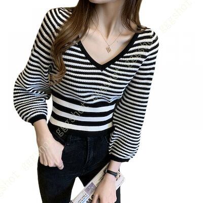 ニット セーター ストライプ ボーダー レディース ドルマン 長袖 シンプル 大人 上品 きれいめ シンプル Vネック きれいめ 白 黒 秋アウター シンプル