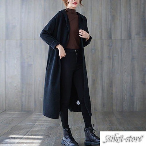 カーディガン レディース 秋 冬 セーター アウター ロングカーディガン 無地 ロングアウター フード付き コート カジュアル 体型カバー 大きいサイズ