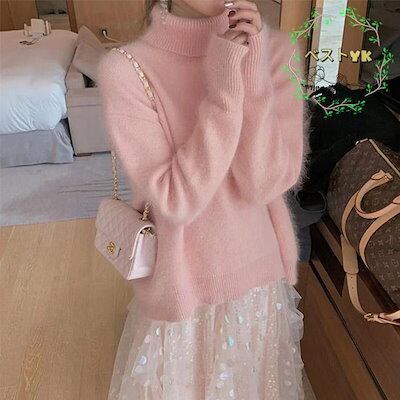 ニットセーター 長袖 セーター レディース ニット ソフト 厚手 トップス アウター リブ ハイネック プルオーバー 可愛い シンプル ゆったり 快適