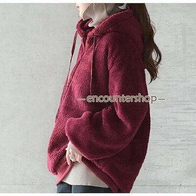 パーカー トップス レディース アウター 秋冬新作 裏起毛 厚手 長袖 プルオーバー 体型カバー フード付き