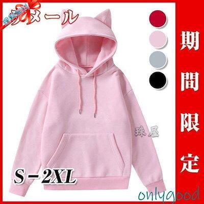 パーカー 春 レディース メンズ トップス 丸首 かわいい 猫 ネコ 長袖 ゆったり 大きいサイズ カップル 無地 猫耳 通勤 通学 普段着 カジュアル 可愛い