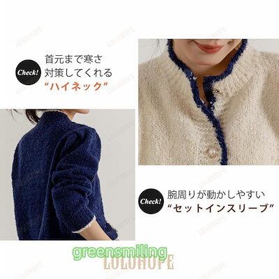ニットカーディガン レディース 秋冬 トップス 長袖 おしゃれ ショート丈 羽織り ハイネック 厚手 ストレッチ 前開き