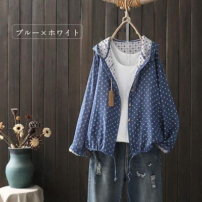パーカー フード付き 秋 配色 レディース 羽織 トップス 羽織り 長袖 総柄 綿 コットン シャツパーカー 軽い 薄手 ライトコート ジャケット アウター