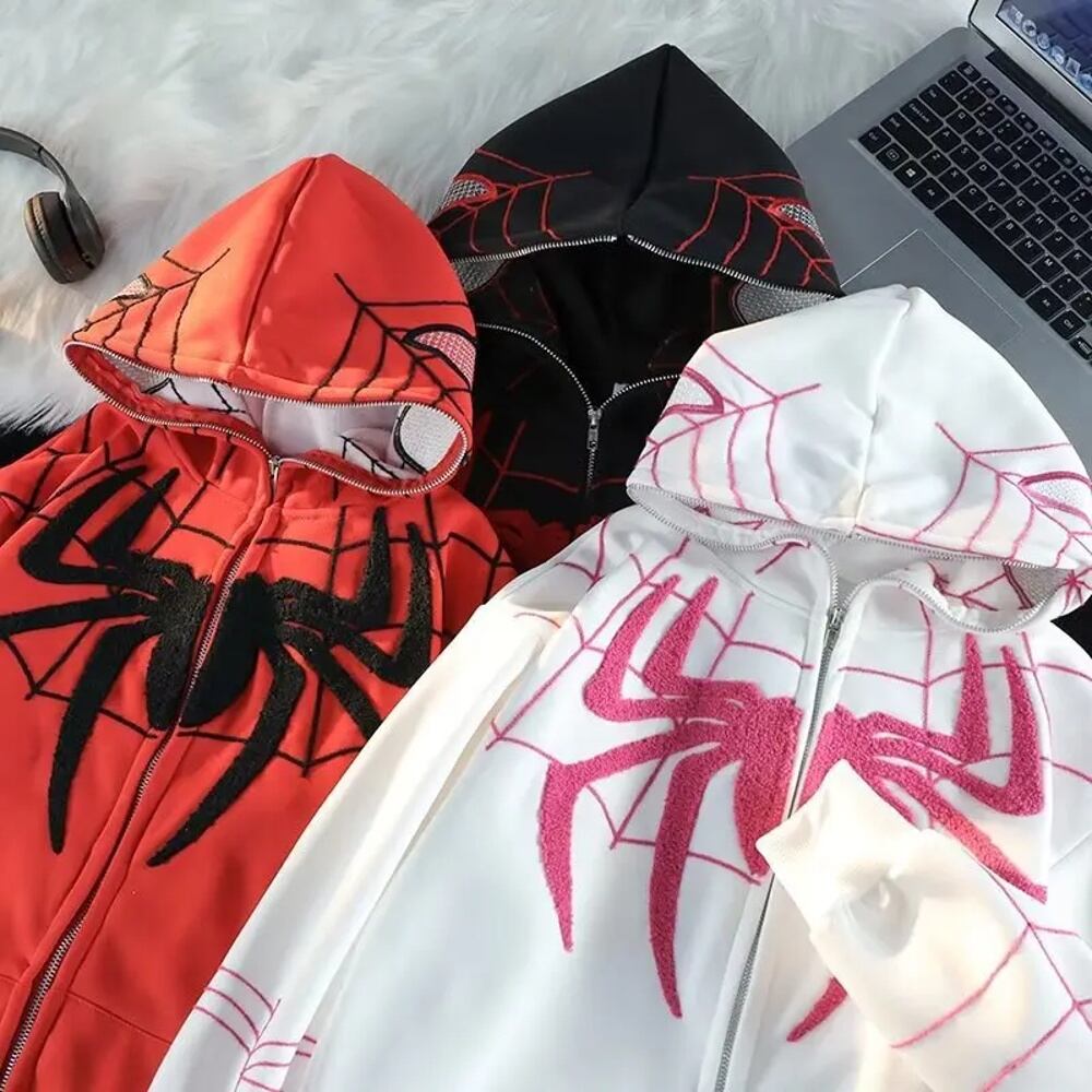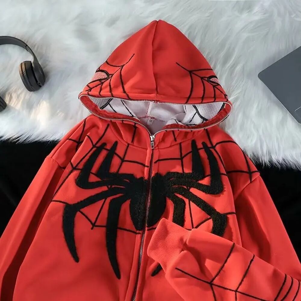 女性のゴシックスパイダープリントのフーディ,特大のストリートウェア,ゆったりとした服,原宿,グランジ,秋,冬,y2k パーカー ジャージ y2k T240908140728_01