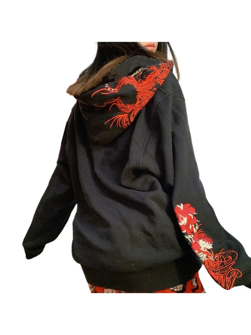女性用スカルプリント長袖ジッパーフード付きスウェットシャツ、ポケット付きカジュアルカーディガン、特大原宿ストリートウェア、大人、y2k パーカー ジャージ y2k T240908140741_01