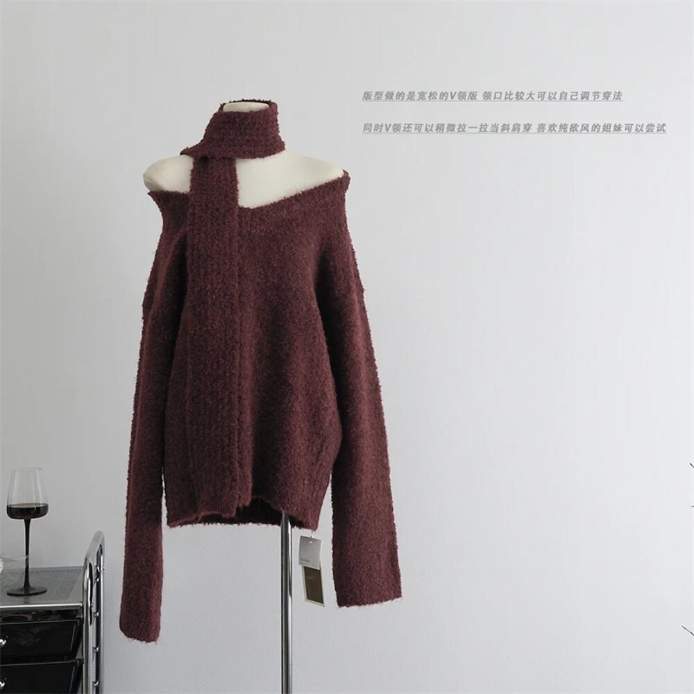 女性用長袖Vネックプルオーバー、ニットジャンパー、ワインレッド、カシミアセーター、美的y2kエレガントなヴィンテージウェア、2000s パーカー ジャージ y2k T240908140746_02
