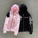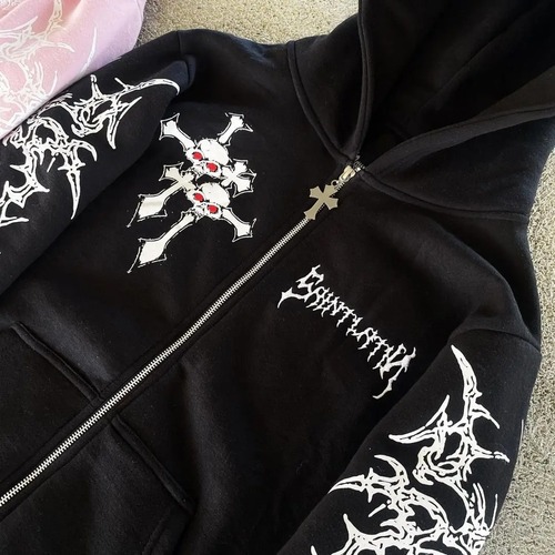 女性のパンクスタイルのジャケット,特大,ジッパー付きカーディガン,ルーズフード付きスウェットシャツ,レトロなスカルプリント,ハイストリート,秋冬,y2k パーカー ジャージ y2k T240908140824_01