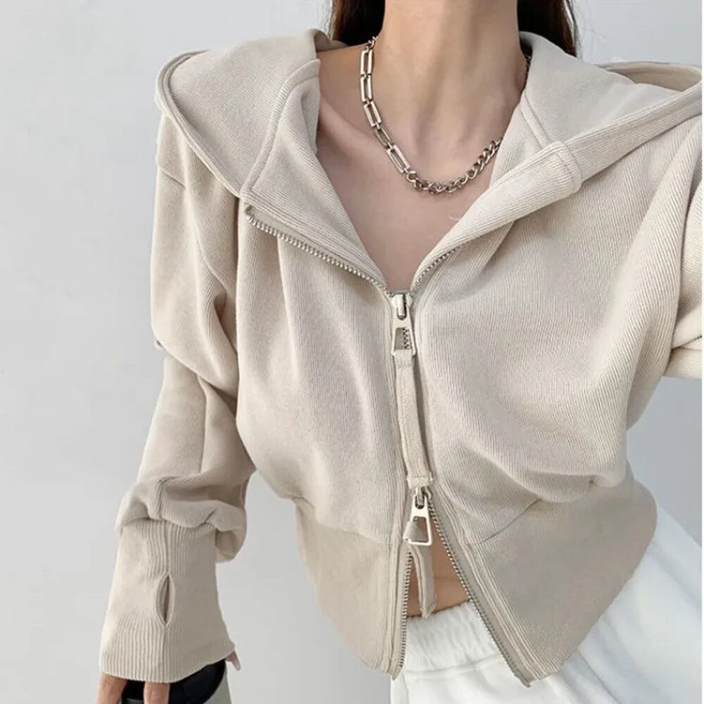 女性用ダブルジッパーフード付きスウェットシャツ,ゆったりとしたカーディガンジャケット,長袖,y2kトップス,オールマッチ,秋冬,新品 パーカー ジャージ y2k T240908140946_02