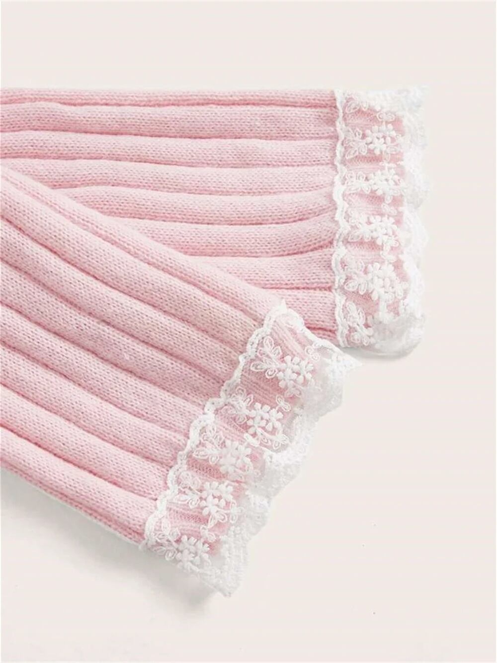 女性のニットオフセーター、ピンクのプルオーバー、スウィートプルオーバー、長袖、ボウレース、パッチワークロンパース、y2kストリートウェア パーカー ジャージ y2k T240908141009_01