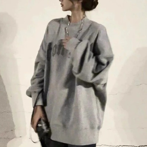 女性用長袖スウェットシャツ,レタリングプリント,特大ストリートウェア,春,秋,韓国,グレー パーカー ジャージ y2k T240908141113_01