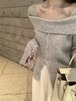 韓国の女性用スラッシュネックニットセーター、長袖ジャージー、オフショルダー、ソリッド、ベーシックジャンパートップス、オールドマネースタイル、y2k、グレー、y2k、2022 パーカー ジャージ y2k T240908141342_03