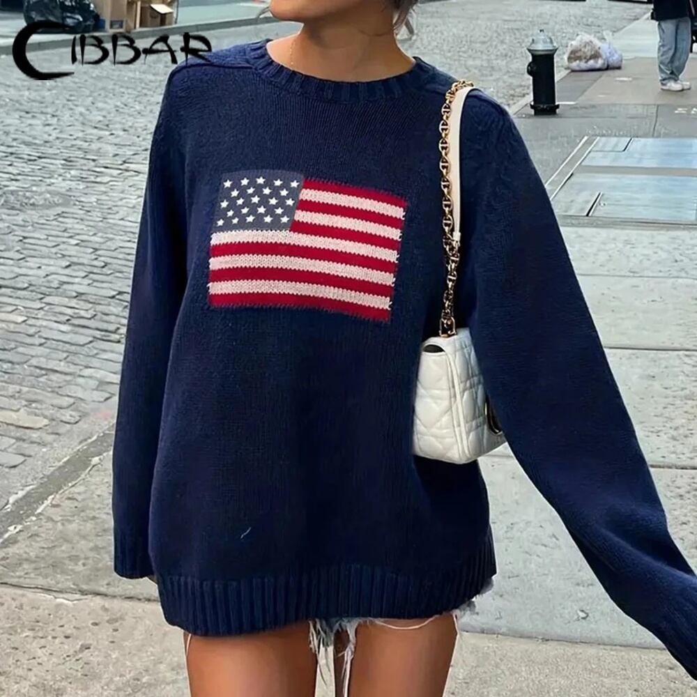 Cibbar-レディース原宿プリントプルオーバーセーター,y2kカジュアルフルスリーブ,ラウンドネックニットウェア,ベーシックジャンパー,秋冬,ベーシック,2000秒 パーカー ジャージ y2k T240908141404_01