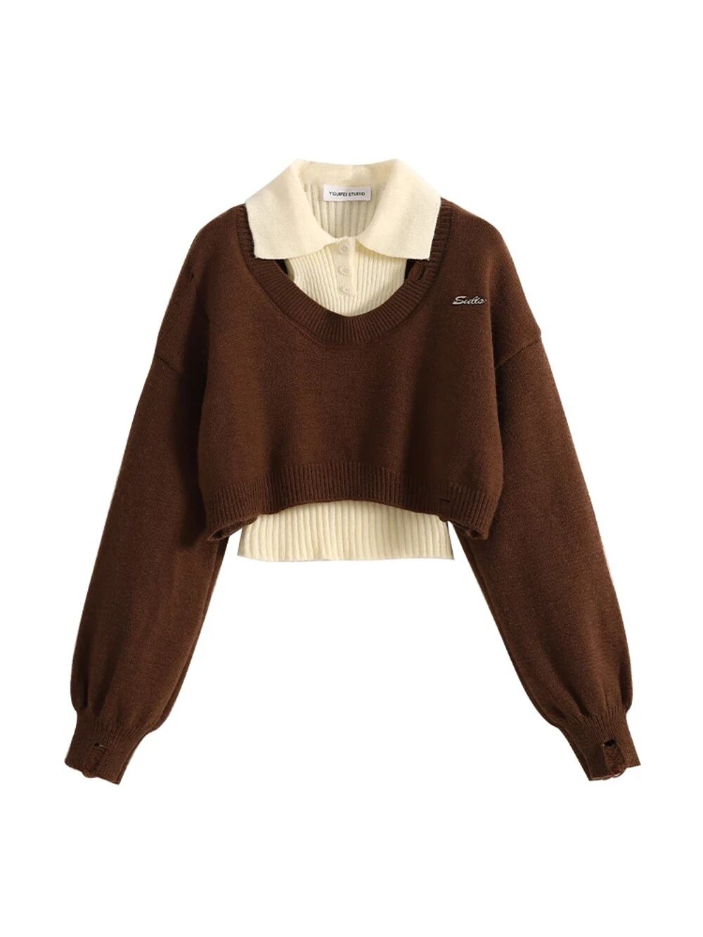 女性用長袖ニットプルオーバー、茶色のセーター、90年代の美学、y2kヴィンテージジャンパー、ファッション服、秋、2000、2021 パーカー ジャージ y2k T240908141438_01