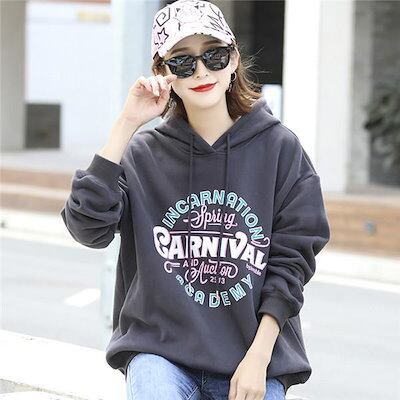 パーカー レディース フード付き 印字 刺繍 トレーナー ゆったり プルオーバー ビッグシルエット 長袖 トップス スウェットパーカー おしゃれ