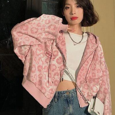 秋新作 パーカー ジャケット レディース ヒョウ柄 ジップアップ パーカー チュニック 長袖 ゆったり 体型カバー カジュアル アウター
