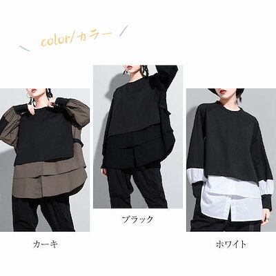 パーカー レディース 異素材レイヤード風トップス スウェット レディース 長袖 モード系 個性的 スウェット トレーナー プルオーバー トップス ドッキング フェイクレイヤード 重ね着風 無地 大人