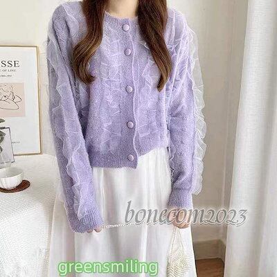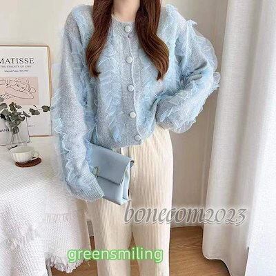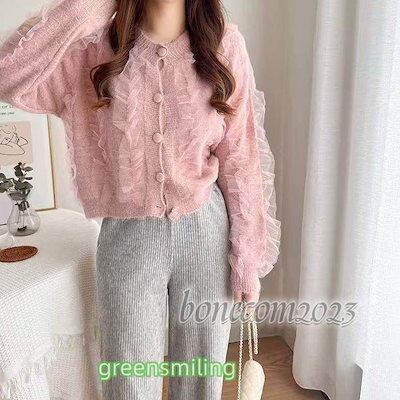 レディース プチプラ ニットカーディガン クルーネック カーディガン アウター 羽織り ショート丈 フリル 秋ファッション 秋冬 ファッションン