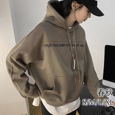 パーカー レディース 長袖パーカー フード付き トップス プルオーバー 英文字 無地 カジュアル アメカジ シンプル ゆったり 春秋 おしゃれ 部屋着