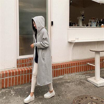 長袖ロングパーカー レディース スウェットパーカーコート アウター ゆるスウェット 裏起毛 フード付き 冬 ゆったり 体型カバー ロング丈 無地 オシャレ 大