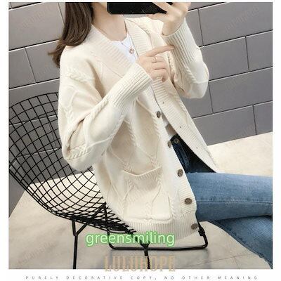 ニットカーディガン レディース 秋冬 セーター ポケット付き ゲーブル編み 前開き 無地 羽織り トップス 柔らかい カジュアル コート アウター ゆったり 可愛い