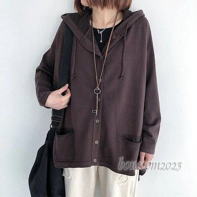 ニットカーディガン フード付き トッパーカーディガン 大きいサイズ パーカー フーディー レディース 秋冬 トップス 長袖 ニット ニットパーカー フード付き ビ