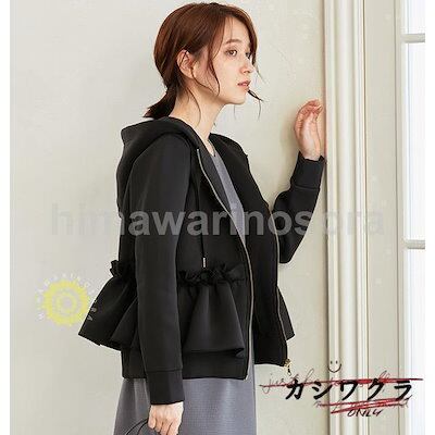 パーカー 可愛い レディース スウェットフリル スウェット風パーカーフード付 トップス フリルブルゾンポケット付き ウエストフリル レディース
