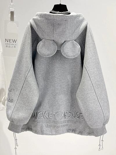 フリース スウェット カーディガン 新作 刺繍 ミッキーの耳 フード付き ゆったり 万能 厚手 コート レディース長袖ミッキー ニット30パーセント割引