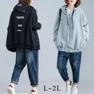 パーカーコート トレーナーコート スウェット トレーナー リブ袖 コットン カーディガン コート アウター ロゴ レディース 長袖 体型カバー ゆったり オーバーサイズ L 2L