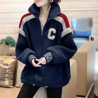 【人気上昇中】 大人カジュアル 防寒 ファッション ファスナー アルファベット パーカー 秋 冬 レディース