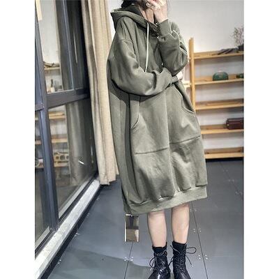 パーカー ロングパーカー ワンピース レディース トップス 無地 長袖 大きいサイズ 春 秋 冬 フードパーカーレディースファッション 体型カバー