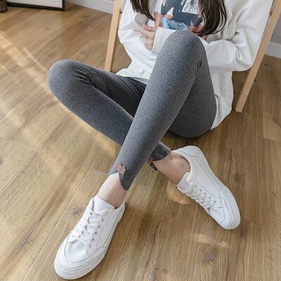 タイツ ストレッチ パンツ ボトムス レディース あったか 裏起毛 美脚 暖かい秋のレギンス韓国風9点ジャンプスウェットパンツキトゥンレザーラベル大きいサイズの太った女性が着用する伸縮性のあるレディー