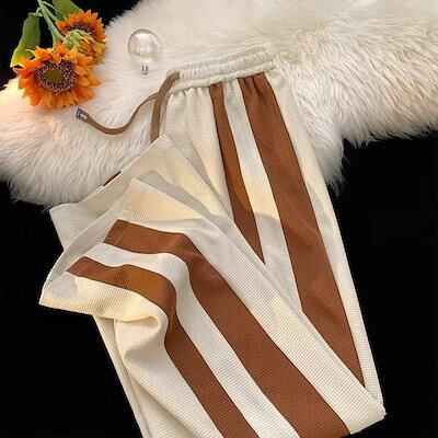 ロングパンツパンツ裏起毛パンツ コントラストカラー スウェットパンツ レディース 秋冬 裏起毛 ストレート ゆったり ワイドパンツ レディース ストライプ ジョガーパンツ