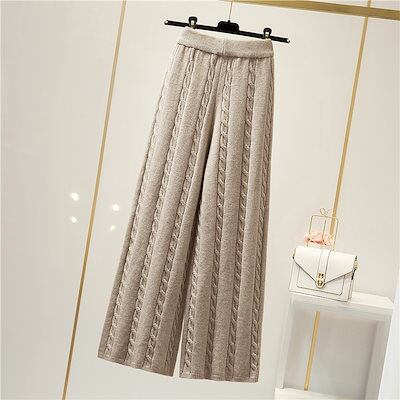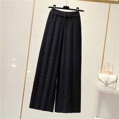 ニットワイドパンツ ゆったりスウェット 韓国ファッション ハイウエスト 毛糸 ワイドパンツ スウェット ズボン ニットワイドパンツレディース秋冬 厚手 防寒 ニットパンツ クリスマス