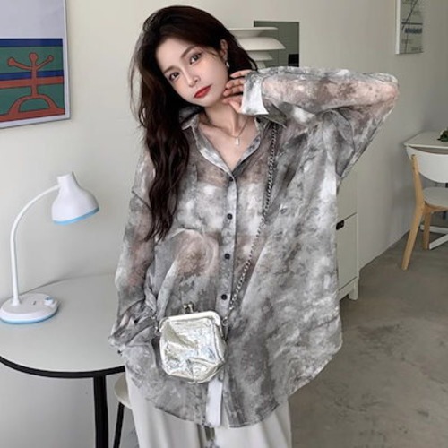 今っぽシアーシャツ ブラウス レディース レディースファッション タイダイシャツ 秋のサンスーツ女性外摩耗デザイン日焼け止めジャケット緩い薄いセクション長袖トップス