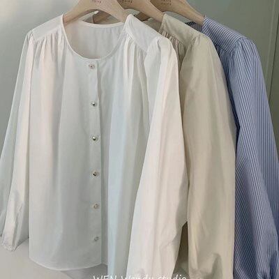 ロンT韓国ファッション【本日限定】 初秋長袖 気質 新作ストライプ シアーシャツ ブラウス レディース シフォン トップス インナー 薄手スーツジャケットカーディガン